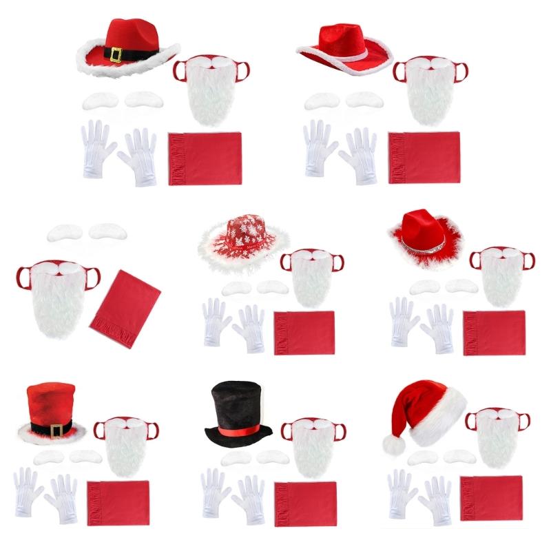 Elevating your festival spirit with our Christmas Coplsay Costume Accessories, Set of 4Pcs includes: Pair of Self Adhesive Eyebrows, Christmas Scarf, Mask with Long Beards. Set of 5Pcs includes Christmas Hat, Christmas Scarf, Pair of Self Adhesive Eyebrows, Santa Mask with Long Beards.