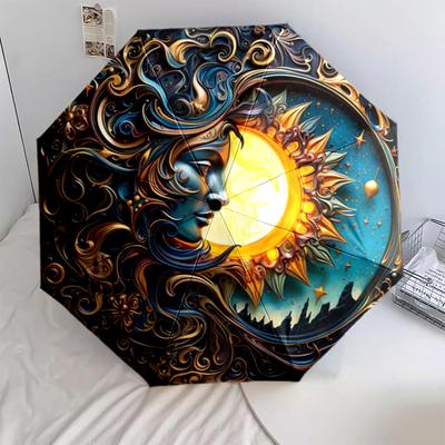 sun and moon pattern, automatic folding umbrella, portable and foldable design, 8 ribs, a Christmas or birthday gift.