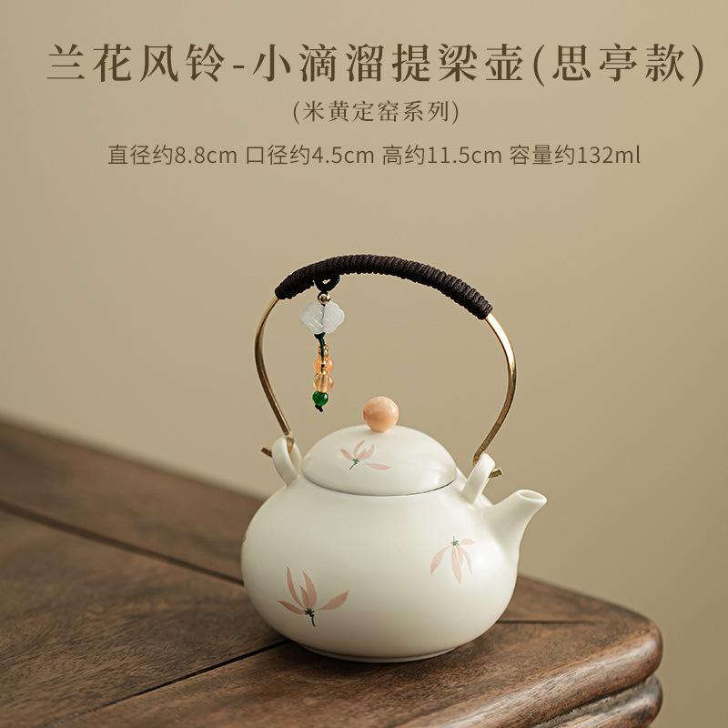 132ml Handritad Orkide Vindspel Lyftande Handtag Tekanna Te-sil Kanna Tebryggare Vattenkokare Med Sil Te-service Hantverk Gåva