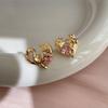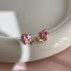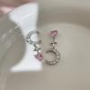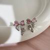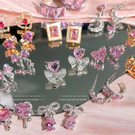 Pink Zircon Heart Bow Earrings for Women with Silver for Everyday Wear