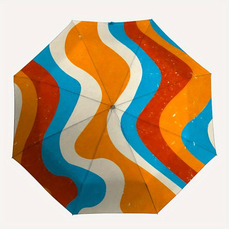 1pc Abstract Waves Automatic Open/close Folding Compact Umbrella, 8 Rib Sturdy Canopy, Lightweight Portable, Everyday Use, Gift,,102