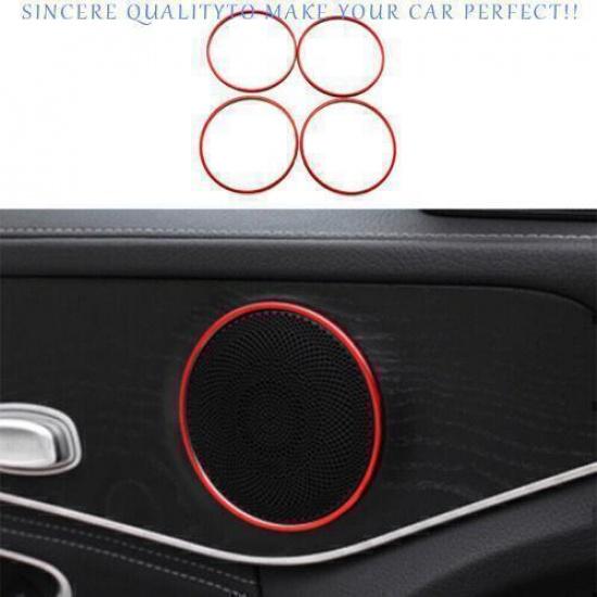 For Mercedes-Benz GLC 2016- Red Alloy Inner Door Speaker Sound Ring Trim 4pc