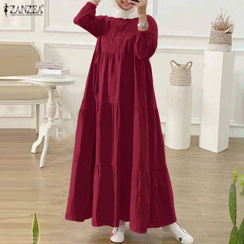 ZANZEA Women Casual Round Neck Loose Long Sleeve Muslim Dress