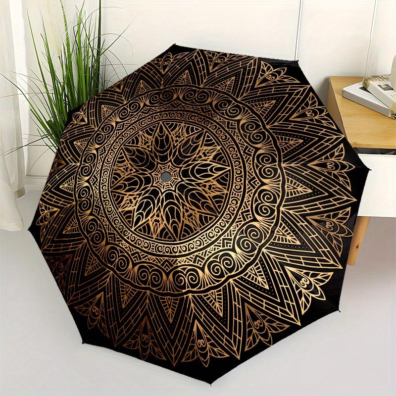 Golden Mandala Pattern Circular Umbrella, Portable 3 Fold Compact Umbrella for Men & Women,S185