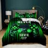 Gamepad Duvet Cover Set Twin King Size Polyester Gaming Comforter Cover Gamer Decor for Teen Boys Green Neon Gamepad Bedding Set