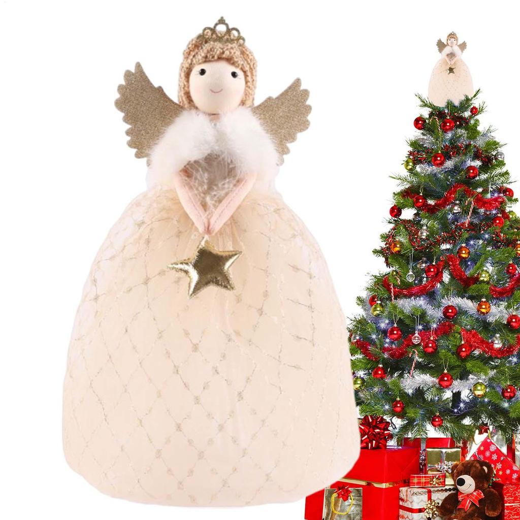 Juldekorationer för träd Ängla Stjärna Juldekorationer Mjuk Docka Flicka Figurin Vingar Träddekor för Heminredning Sovrum