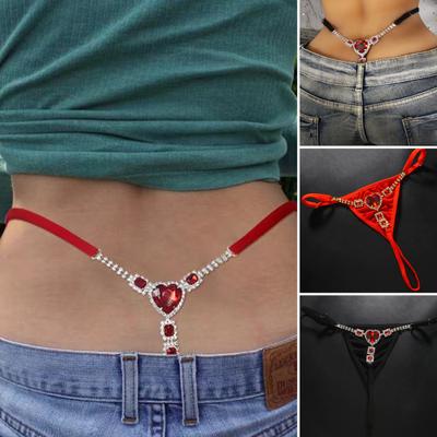 Sexig strass-tanga för kvinnor Mini G-string Bikini-tanga Låg midja T-baksida Underkläder Midje-kroppskedja Smycken för festivalrave