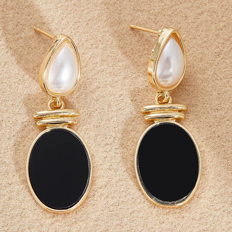Huajie Women's Elegant Black White Contrast Color Design Pendant Earrings Classic Banquet Ladys New Ear Stud Tide