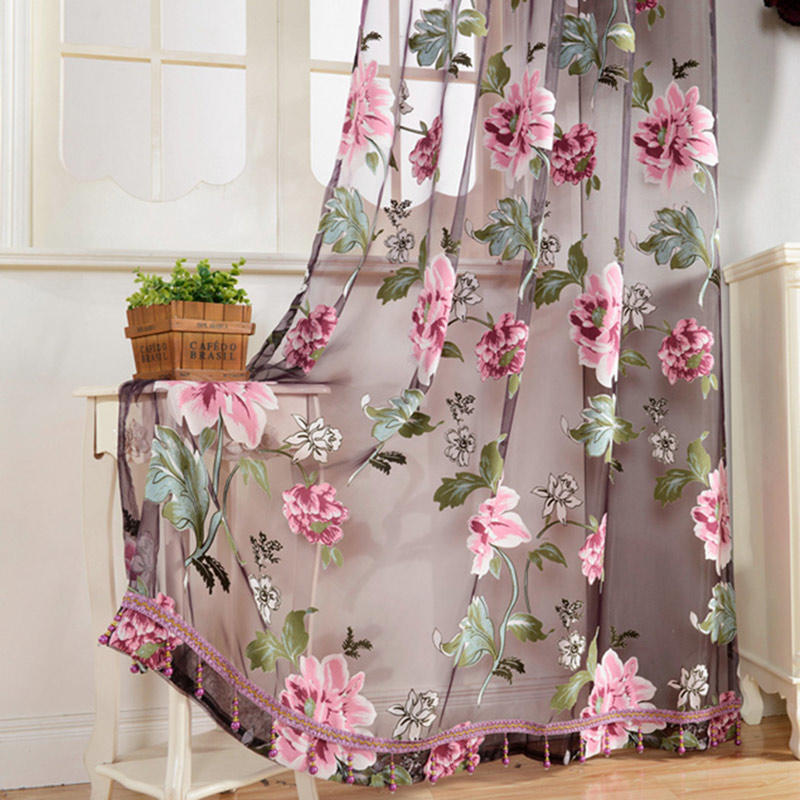 2Pcs Window Curtain Transparent Peony Flower Windows Panel Balcony Living Room Bathroom Bedroom Curtains Home Decoration