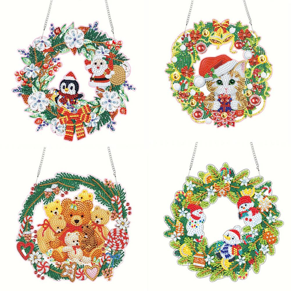 4pcs Xmas Theme 2D Flat DIY Special Shape Rhinestone Diamond Art Window Pendants Diamond Art Pendant Home Wall Decoration Crafts