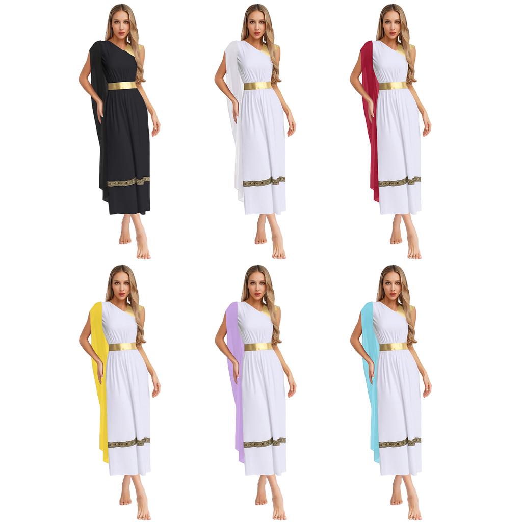 Dam Antik Grekisk Kostym Ärmlös Högmidjad Tunika Klänning Guld Romersk Kejsarinna Toga Halloweenfest Klänning
