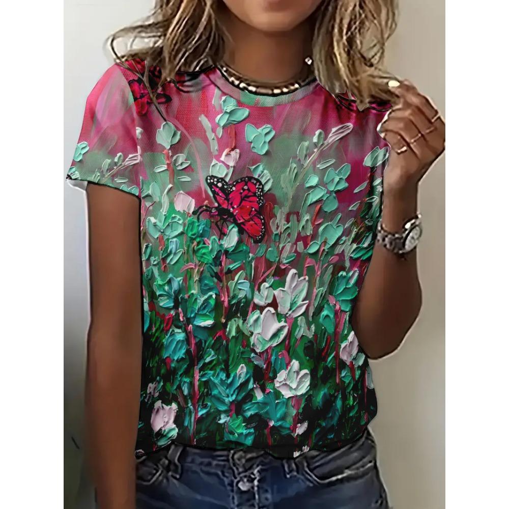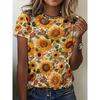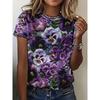 New women's 3D printed round neck pullover short sleeved loose casual comfortable T-shirt flower pattern versatile women's T-shirt