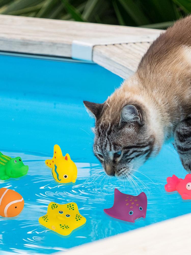 Cat Pool Toys 6pcs Kitten Pool Water Squeaky Toy Interactive Cat Toys squeeze water toys Swimming Bath Fish Toy Cat Supplies