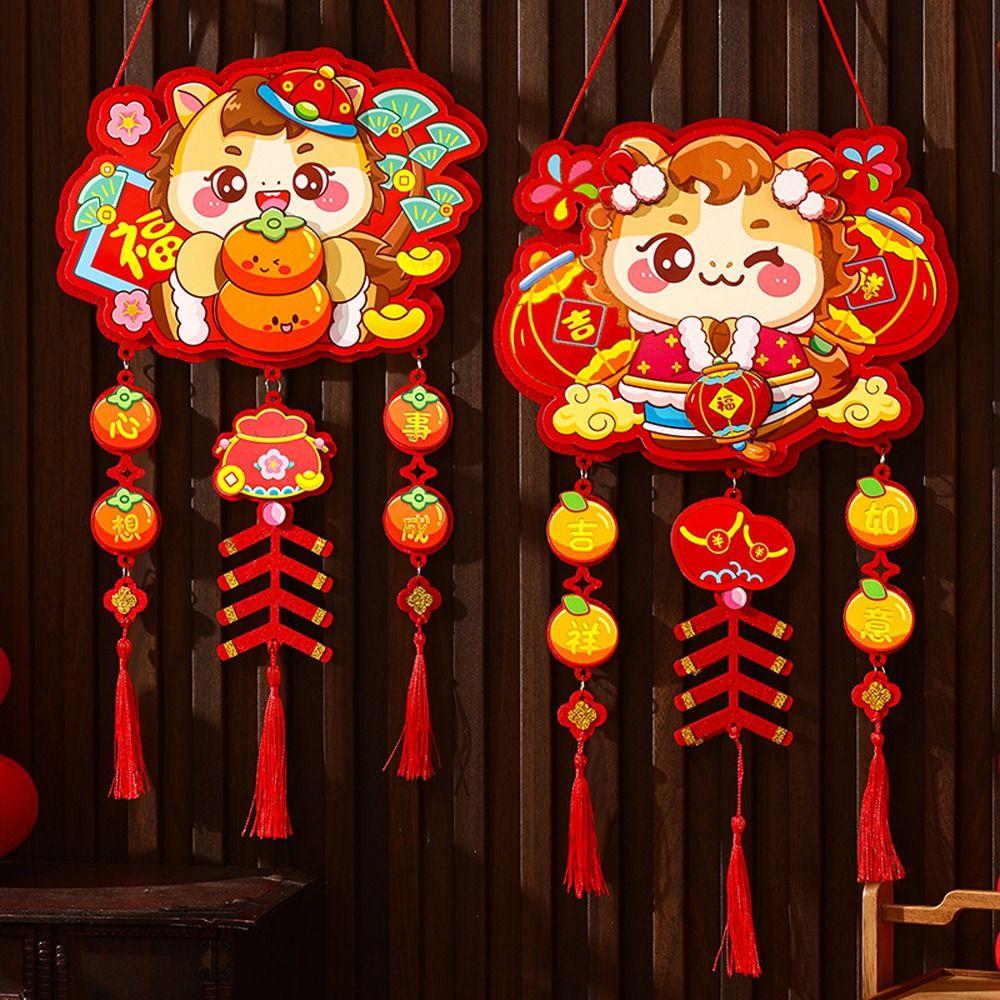 Non Woven Lucky Character Pendants Traditional with Tassels Fu Hanging Ornament Handmade 2026 Horse Year Decoration