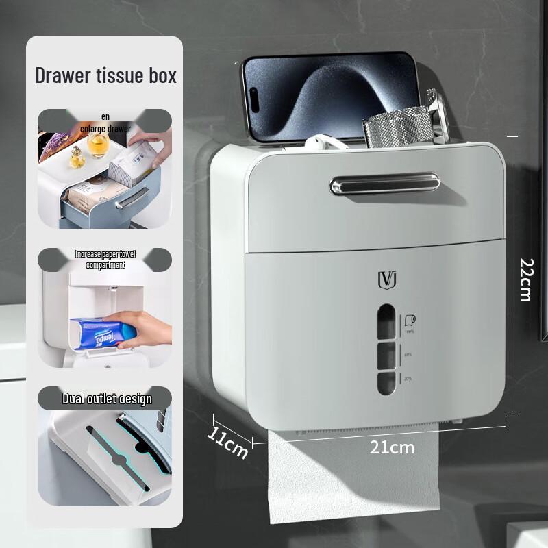 Weijian Punch-Free Wall-Mounted Bathroom Tissue Box with Storage