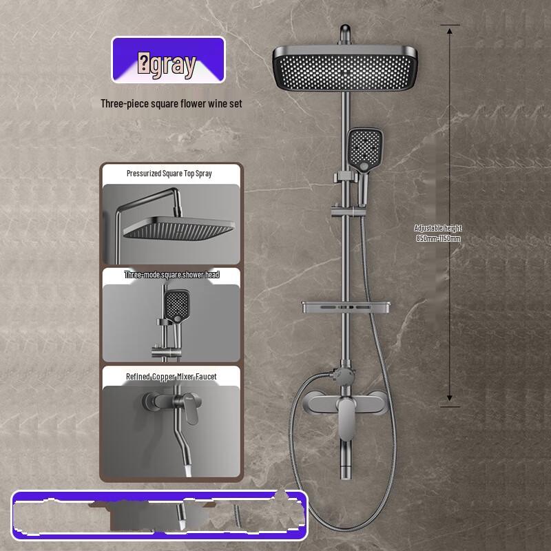 Shengbei Gunmetal Grey Shower System with Square Rain Head