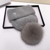 Mössa Mjuk Äkta rävpäls Pom Poms Boll Skullies Beanies Håll Varm Vintermössa för Kvinnor Flickor Ullmössa Utomhus Stickad Mössa Tjock Damkeps