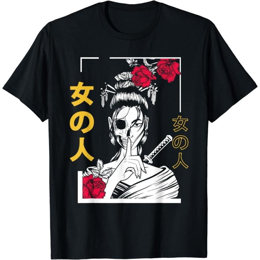 AnAtum Japanese Samurai Floral Warrior Geisha Woman Tokyo Anime T-Shirt