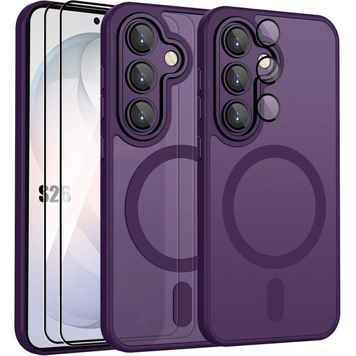 Coque Rigide - BOOLING - pour Samsung Galaxy S26 - avec Anneau Magnétique - 2 Vitres - Violet