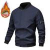 Men's Fleece-Lined Bomber Jacket Warm Stand Collar Navy Blue Casual Windproof Outerwear