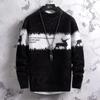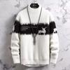 Herrvit polotröja med svart hjorttryck Långärmad Casual stickad topp