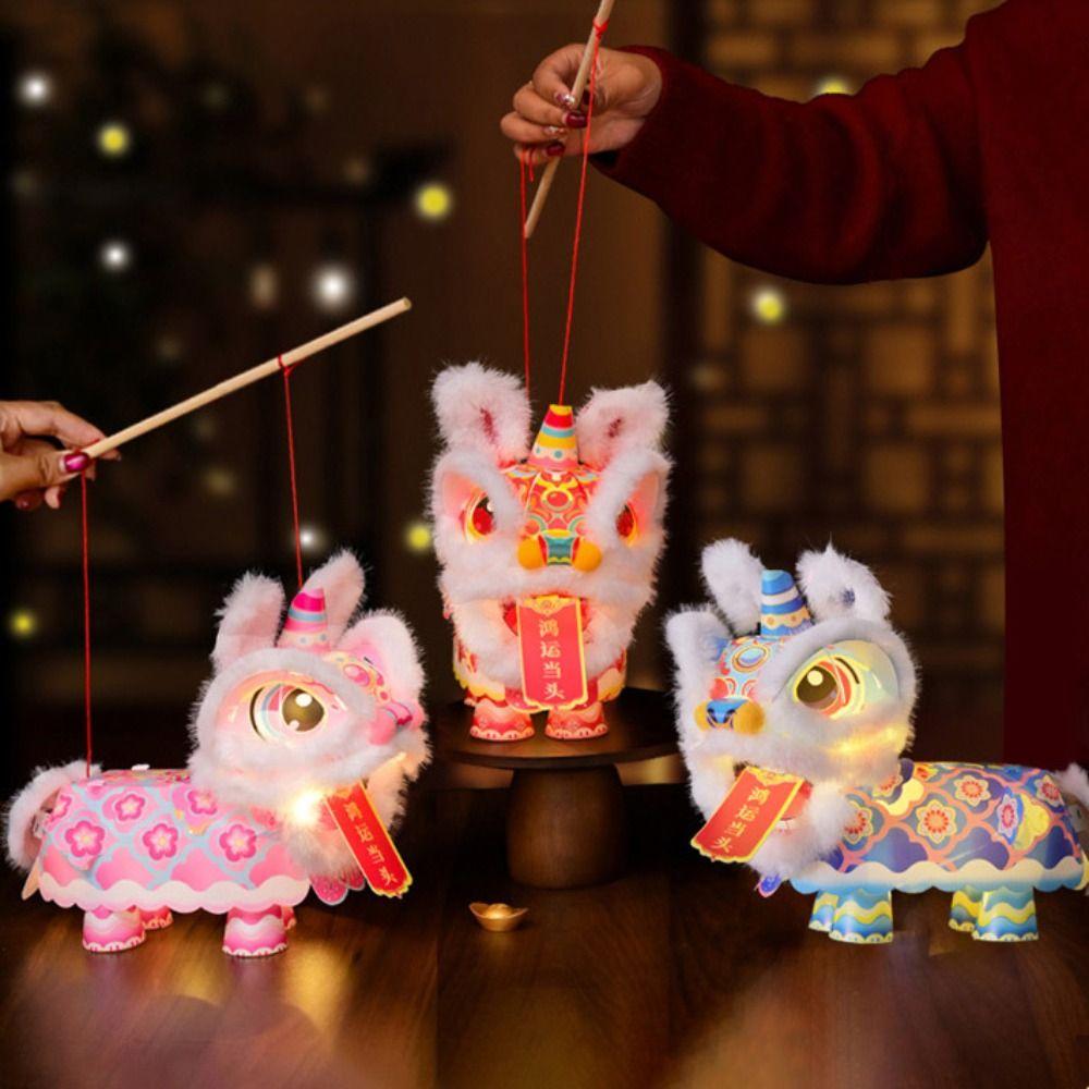 Ancient Style Lion Dance Lantern Waterproof Handmade Handheld Lantern Cartoon Material Packages Luminous Lantern