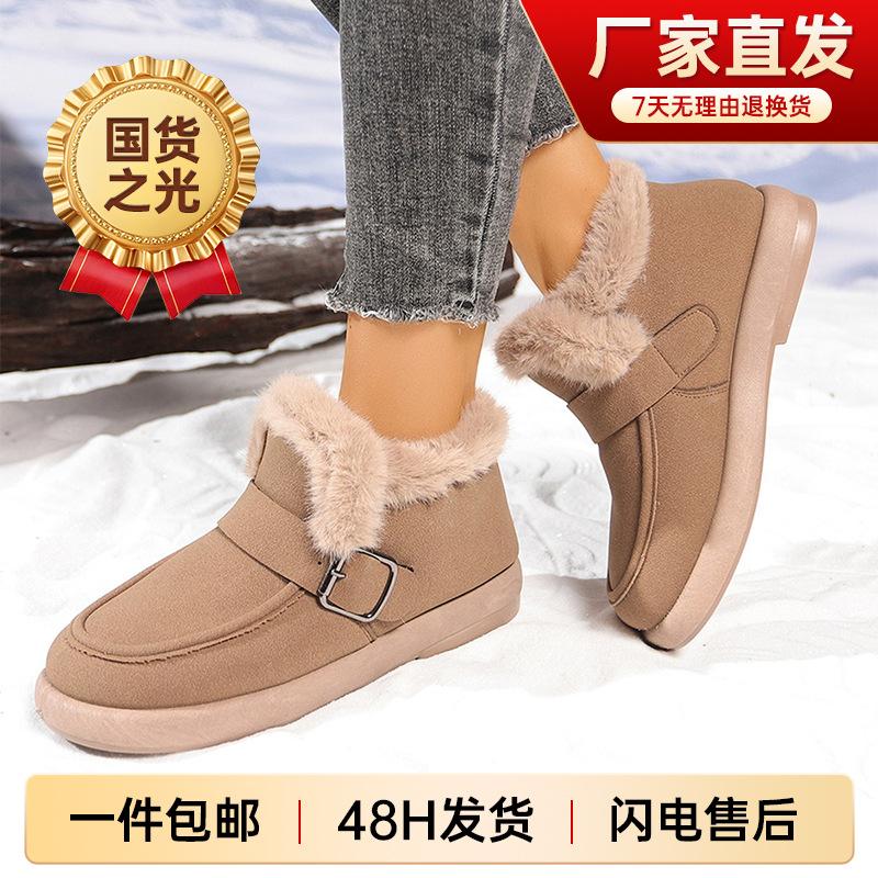 Strictly selected large-size snow boots, women's winter velvet and thickened fur integrated non-slip shoes, and pregnant women's cotton shoes
