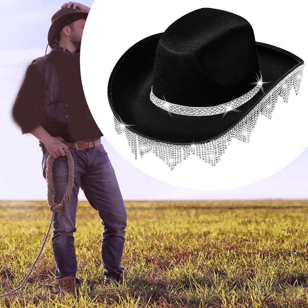 - 【Versatile Use】: Rhinestone Tassels Cowboy Hat is great for themed parties, carnivals, stage performance, cosplay costumes, beach, travel, etc.