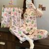 Indulge in comfort and style with this women's summer loungewear set, featuring a playful leopard print and love heart design. This three-piece pajama set is crafted from cloud cotton for the parts touching the skin, offering a soft and gentle feel, while durable polyester ensures longevity. The set includes a short-sleeve top and coordinating pajama bottoms, perfect for staying cool and stylish during warmer nights. Ideal for lounging at home or relaxed sleep, this set combines fun design with luxurious comfort.