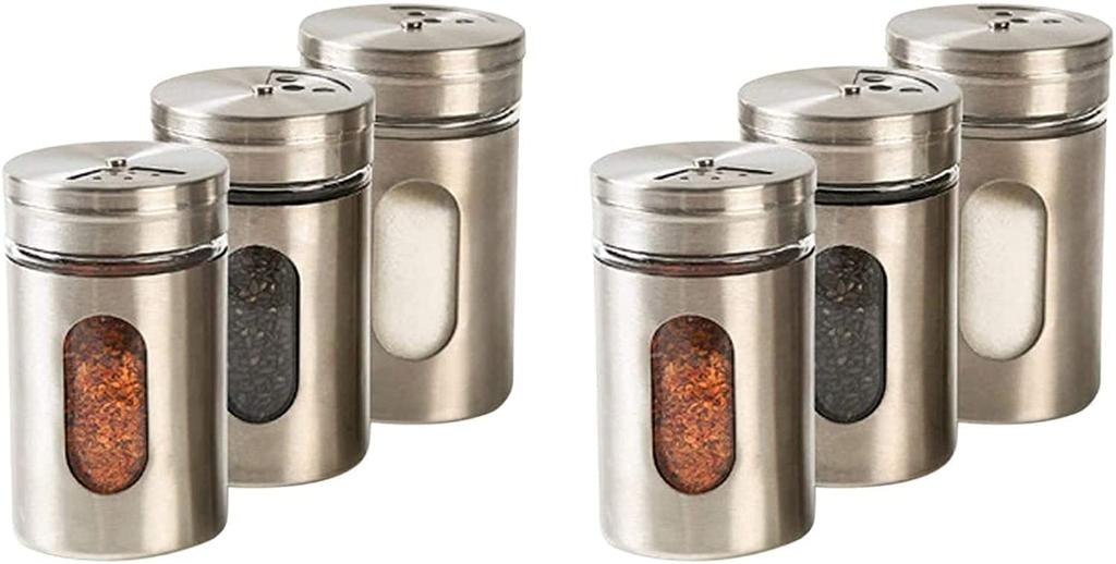 Morningplace Stainless Steel Seasoning Tins, Seasoning Jar Set with Salt, Pepper, and Sugar Shakers, Perfect for the Kitchen (Set of 6)