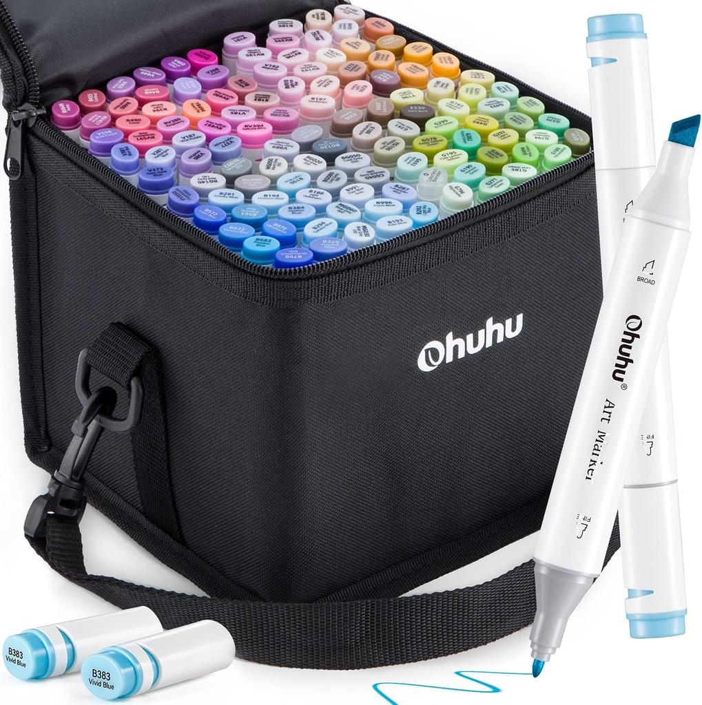Ohuhu Pennor 120 Serietidning och Bred och Fin Dubbel Konst Bärväska Ingår Pennor, Färger, Pennor, Oljebaserade Alkoholbaserade, Avslutad, Material,