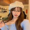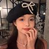 Bow Top Hat för Kvinnor Fransk Stil Retro Ull Ansiktsvisande Liten Varm Bucket Hat