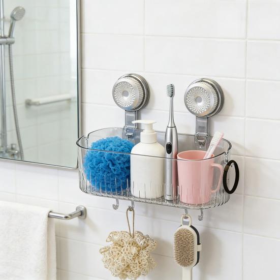 Strong Suction Cup Adhesion: Equipped with powerful suction cups, this storage box firmly attaches to smooth bathroom walls without drilling. It ensures a secure hold that prevents slipping or falling, protecting your walls from damage and eliminating the need for hardware or tools.
