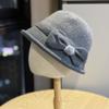 New Autumn and Winter Women's Elegant and Versatile Bow Fisherman Hat for Outdoor Travel Warm Basin Hat Fashionable and Stylish