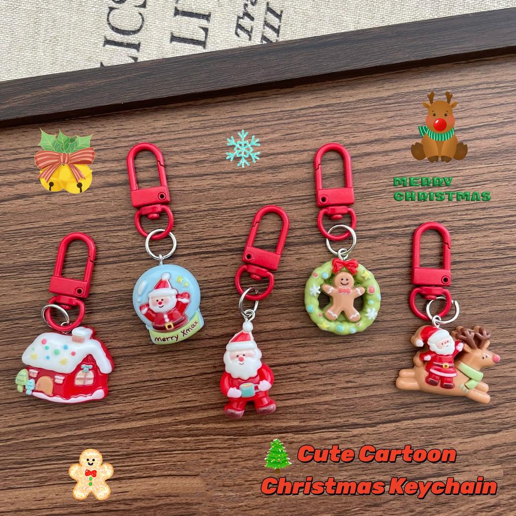 1/5Pcs Cartoon Elk Santa Claus Pendant Keychain Cute Resin Ornament for Student Backpack Christmas Party Small Gift Idea