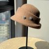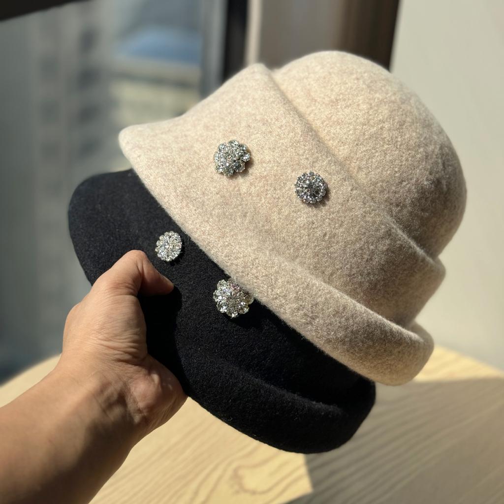 Ny Höst och Vinter Elegant Hög Hatt Dam Ull Strass Fiskarhatt Brittisk Retro All Match Varm Ryttarhatt