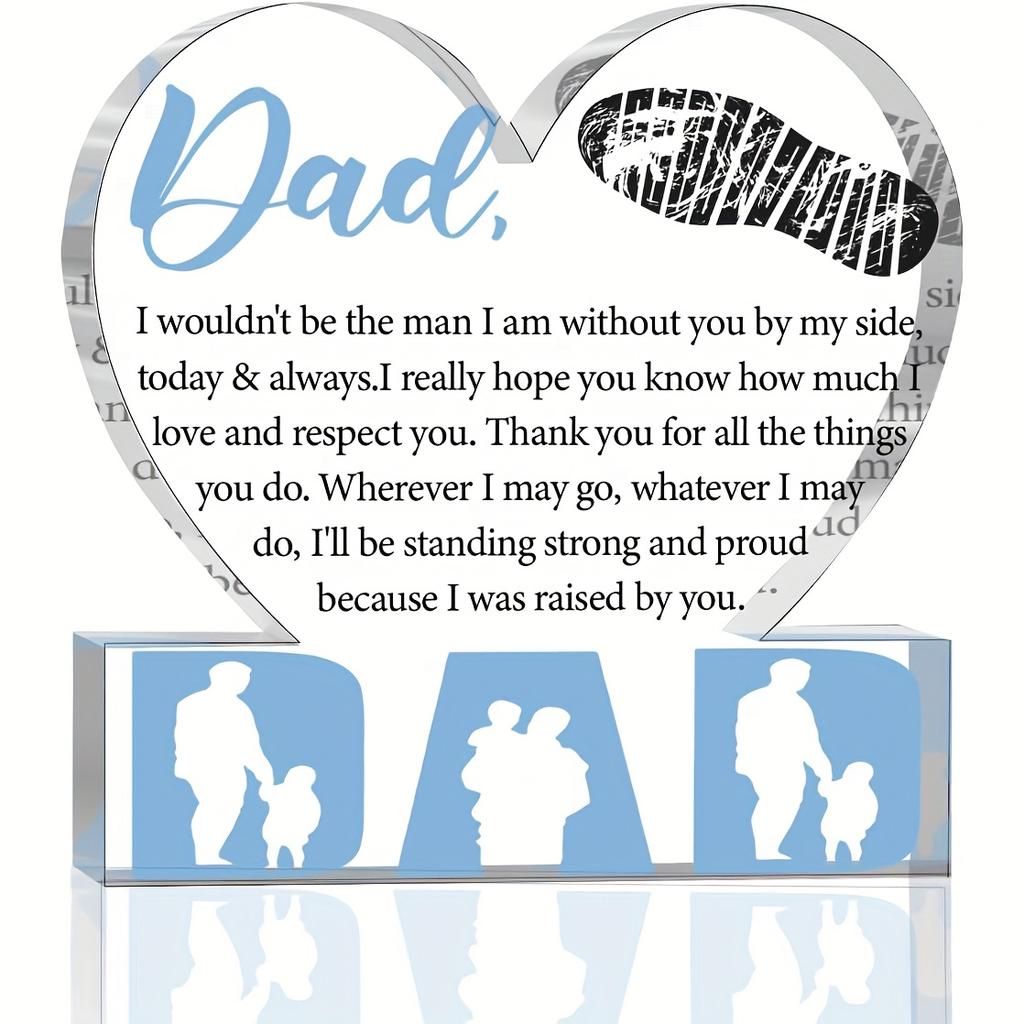 Tydlig Akryl Skrivbordsdekor Skylt för Fars Dag, Bröllop eller Födelsedag - 'Pappa, jag skulle inte vara den man jag är utan dig vid min sida' - Hjärtformad