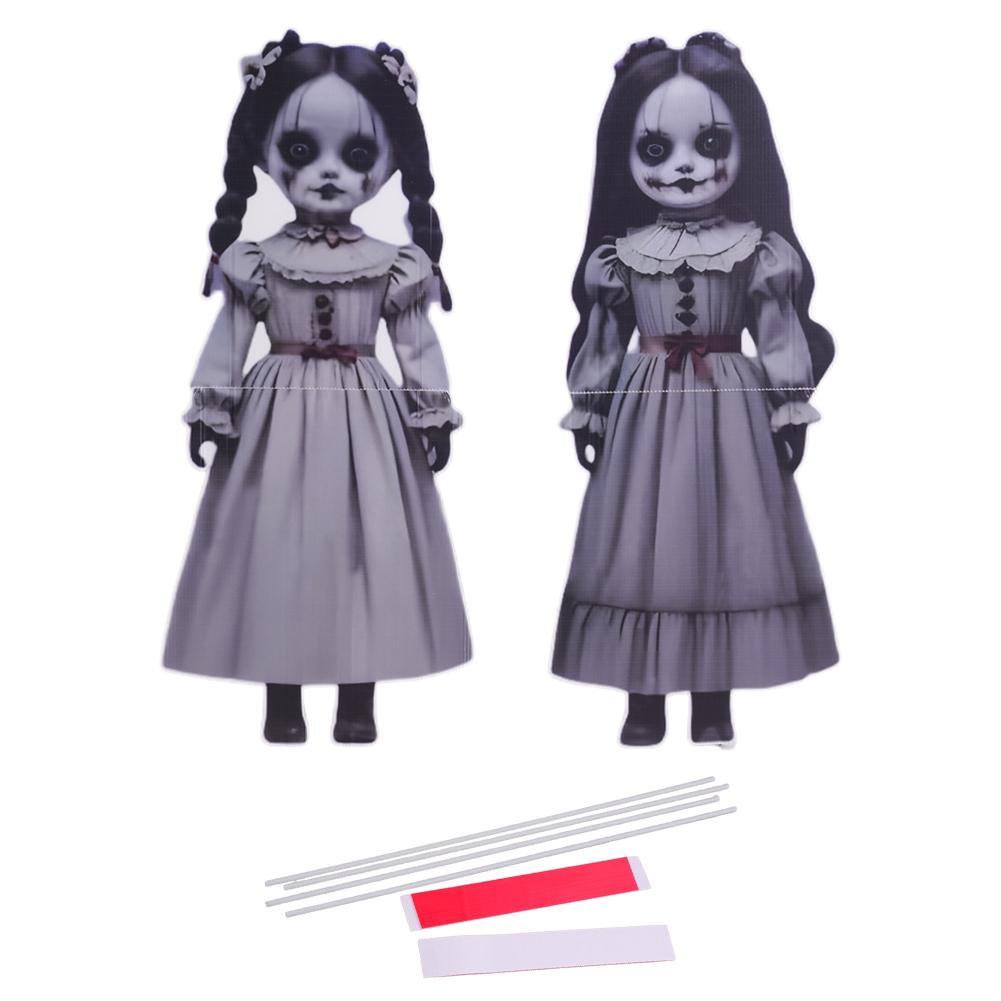 2-pack 2D Halloween-dekorationer, Läskig Spökflicka Docka Trädgårdsstolpar för Utomhusträdgård, Spökhus Markinsättningsskyltar