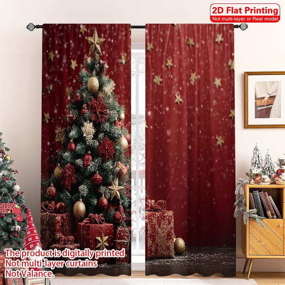 2pcs 2D flat printing Merry Christmas Window Curtains merry christmas1 100% Polyester Without Electricity Spring Use for
