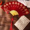 Traditional Fan Design Red Envelope with Chinese Knot Tassel Children's Money Bag 10 Cards Thickened Lucky Money Packet Gift