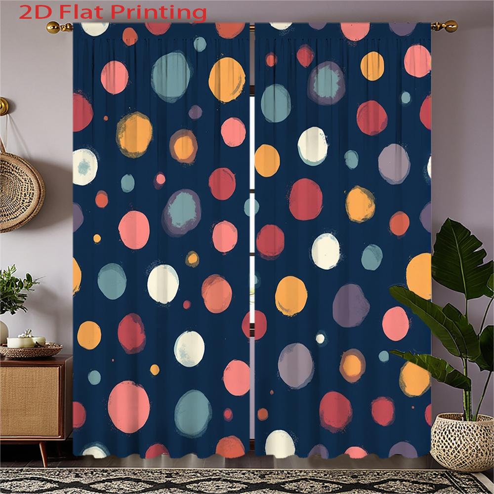 2pcs Modern Window Curtains - Semi-Sheer Light Filtering Privacy Drapes with Dark Blue Background & Multicolor Dot Pattern