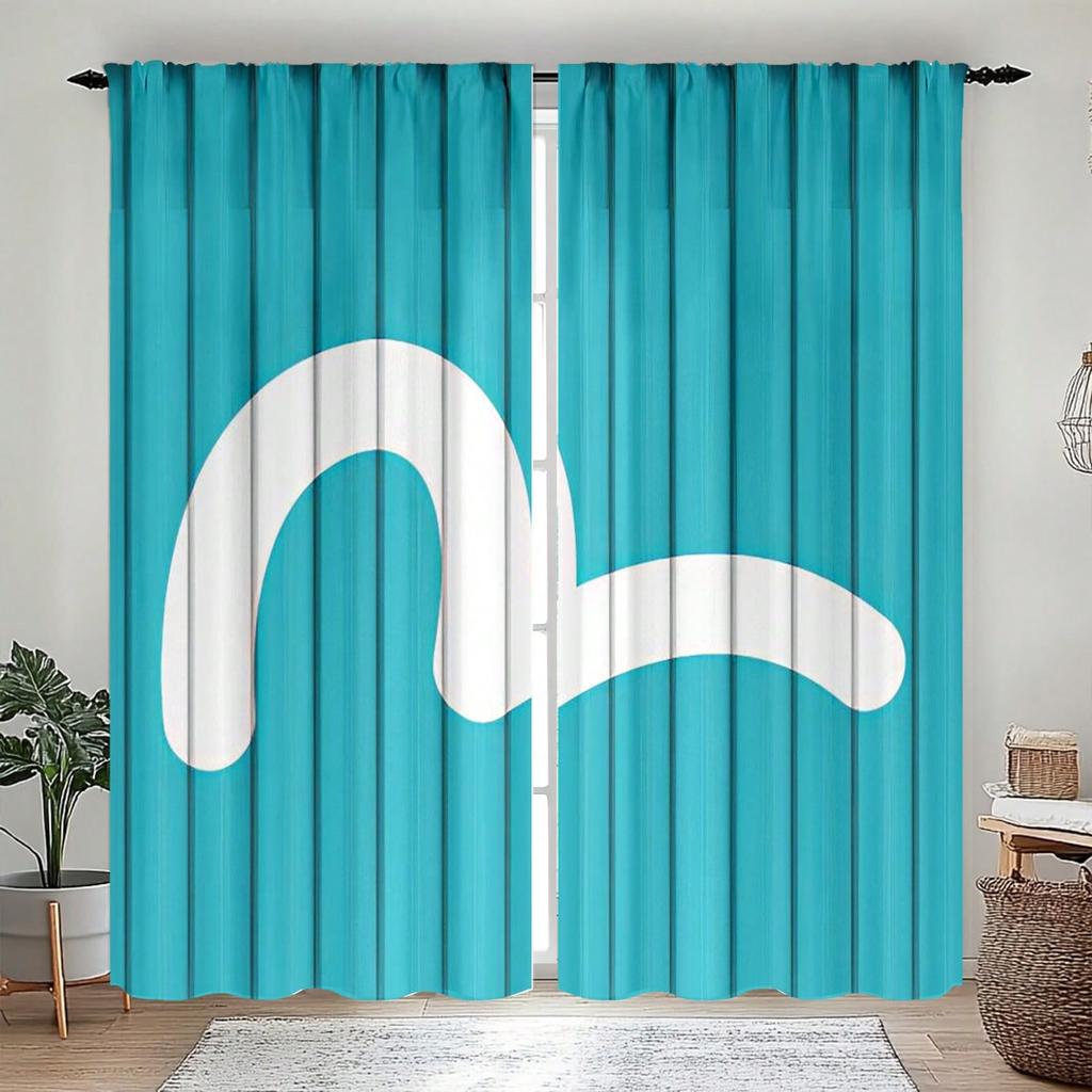 2pcs Blue Container Graffiti Pattern Semi-Sheer Curtains Polyester Rod Pocket Curtains Machine Washable Fade Resistant