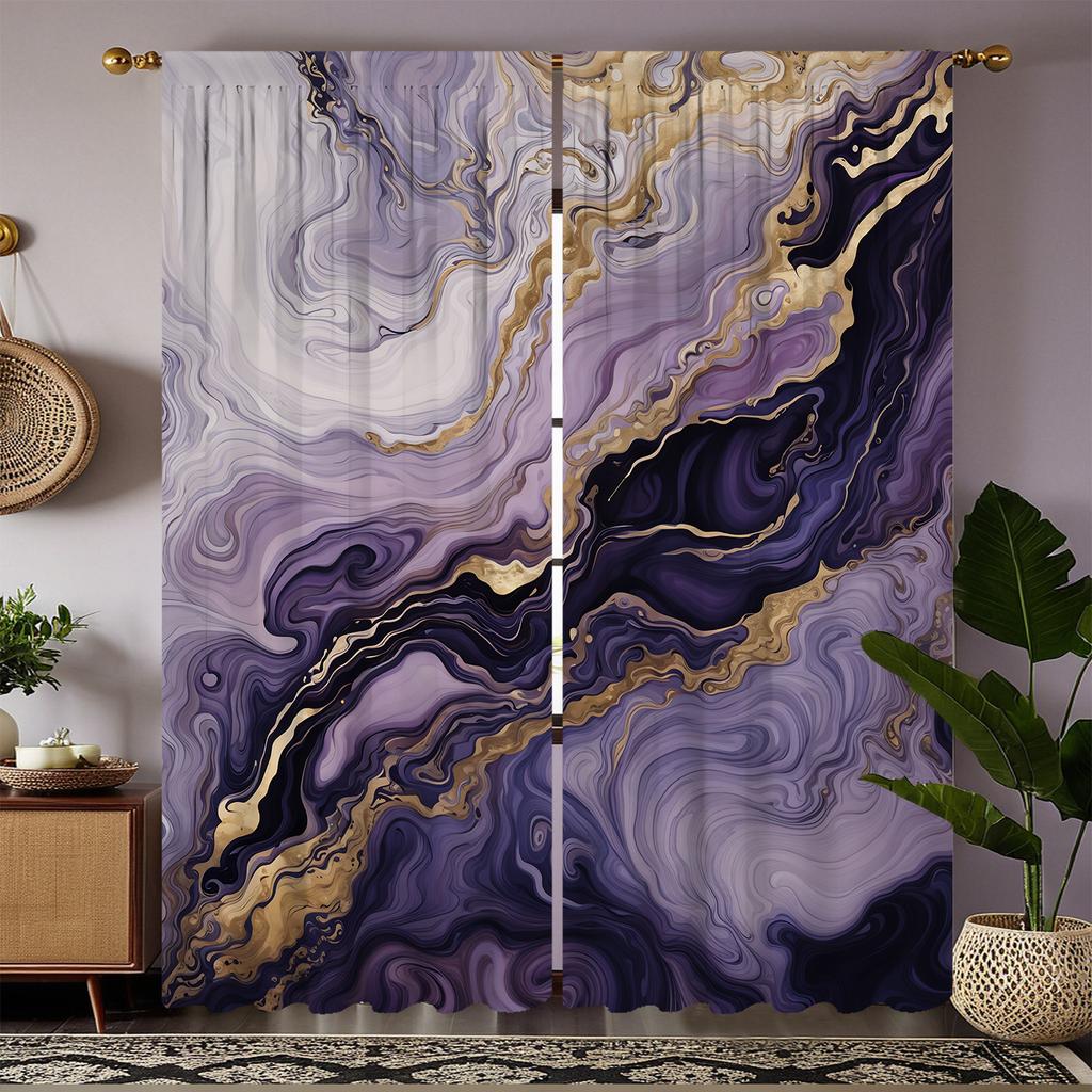 2pc Purple and gold wave pattern curtains polyester fabric machine washable suitable for bedroom living room decoration