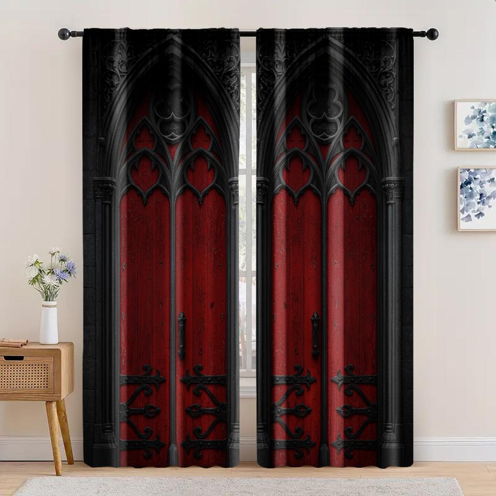 2pcs spring summer Curtains Gothic Castle Sheer Curtains Polyester Easy Install Decorations Outdoor for Kitchen Living Room