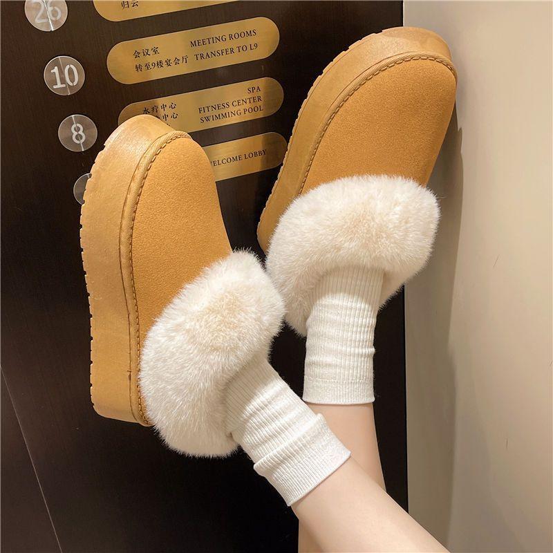 Fleece thickened snow boots short boots non-slip flat bottom student warm cotton shoes fluffy shoes