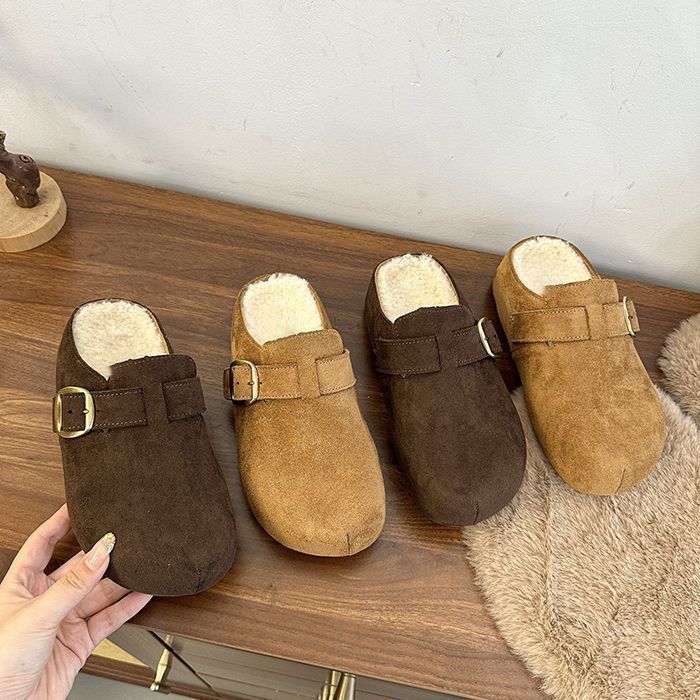 Autumn and winter new retro style Birkenstock bag head slippers thick bottom heightening velvet lazy bag head half slippers