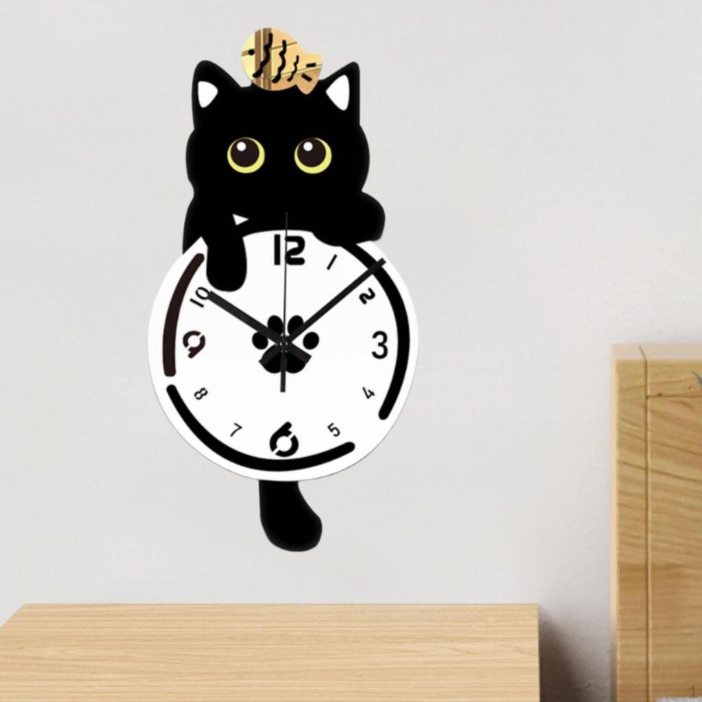 Cat Pendulum Wall Clock Hanging Ornament Sturdy Non Ticking Quiet Movement Arabic Numerals for