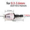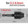 Snabbväxlande sexkantsskaft borrchuck trebackars självcentrerande chuck borr elektrisk fräs klämverktyg 1/4 tum 0,3-3,6/6,5 mm