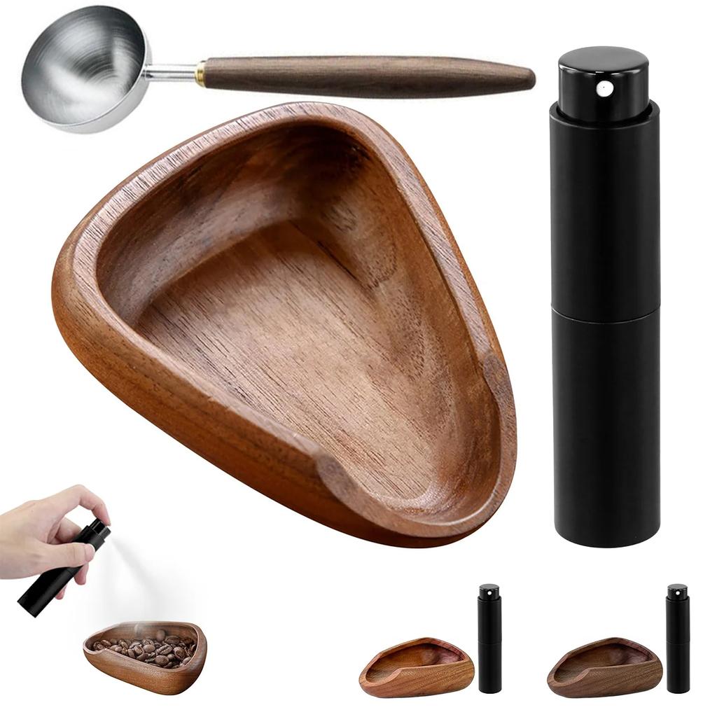 Multifunctional Wooden Coffee Bean Dosing Cup and Light Spray Bottle Barista Set for Enhance Brewing Coffee Experience