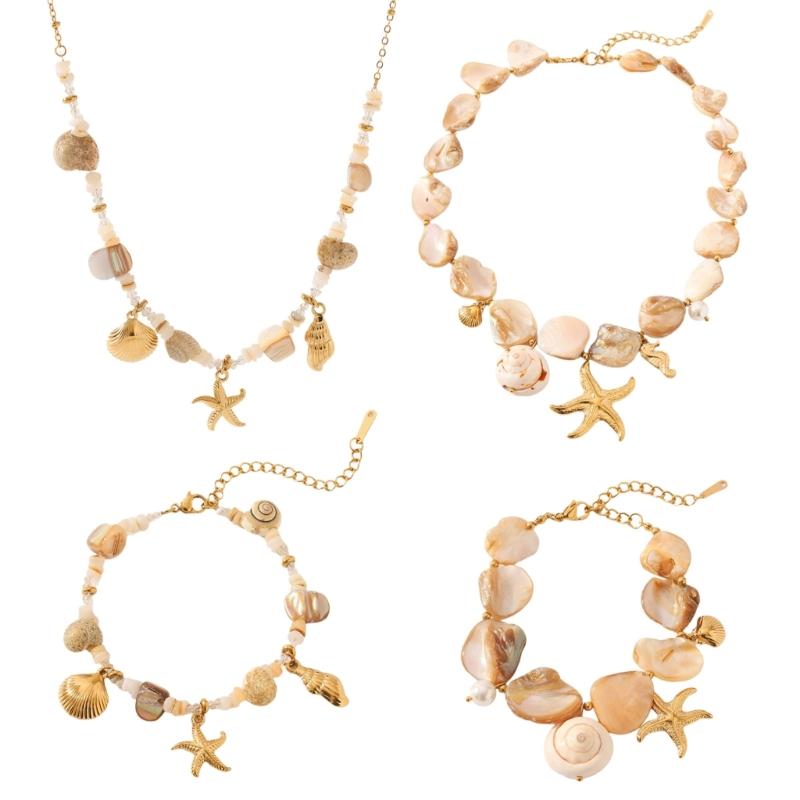 Embrace elegances with this bohemian starfish necklace/bracelet set, crafted from stainless steel for durability and a lightweight feel perfect for summer styling.